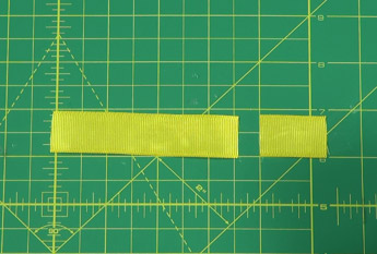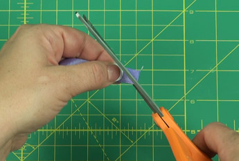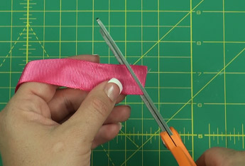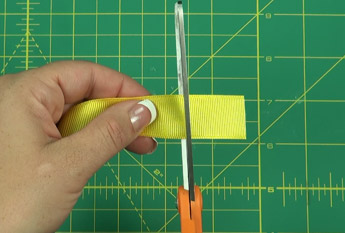 To make a straight cut, set the ribbon down flat on a cutting mat and make a straight cut using a rotary cutter.