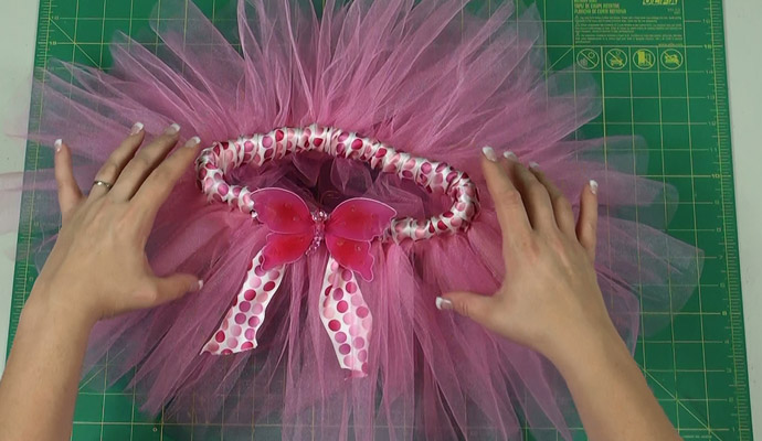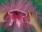 For example: For a 10 inch length tutu you would need to cut 22 inch strips of tulle (10″ x 2 + 2 = 22″ strips).